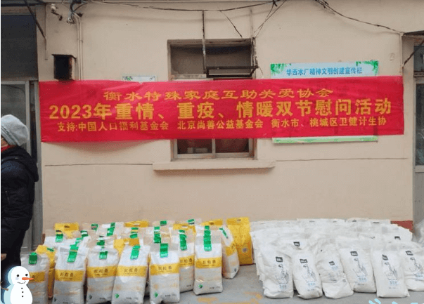 2022我们努力的活着,2023我们使劲好好活着,疫情放开,许多(衡水特殊家庭协会)失独老人羊了,在缺医少药又遭新冠肆虐、承受身心的痛苦煎熬,(衡水市桃城区特殊家庭互助关爱协会)在会长冯立柱带领下紧急成立应急小组,成员除协会核心成员,还有衡水市卫健委,桃城区卫健局领导组成,应急急诊治疗绿色通道,多方协调根据每一位失独老人病情,基础病,衡水第三人民定点医院,进行中药配置缓解病痛,市卫健委戈建国主任又紧急协调、协会又购置发烧布洛芬缓释胶囊1400多粒,作为缓解新冠药品。协会线上鼓励大家勇敢战胜疫情,战胜自我,羊过羊康了。在2023即将到来之际!在中国人口福利基金会鼎力支持下,北京尚善公益基金会关怀相助中,(衡水特殊家庭协会)又为大家准备好双节优质面粉、大米近两千斤,还有新年挂历!当把药品,米面,挂历分批、分期、发大家手中时!大家激动的说:感谢中国人口福利基金会,感谢特殊家庭协会这个温暖的家,您们带来党政府的温暖,带给大家战胜疫情的信心,有家真好!!把大家与党政府彼此亲密关系拉的更近,衡水特殊家庭协会正能量引导,凝聚力更强,奋进新征程决心,信心满满,愿祖国繁荣昌盛,国泰民安!