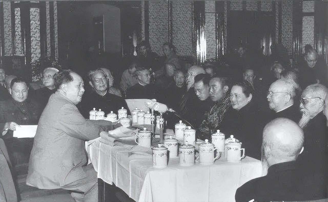 除了外出和慰问,忙于开会也是毛主席过春节的一大特色。1957年大年初一早上8时,毛主席在中南海颐年堂召开座谈会,40余位党外人士参加。会议一开始,毛主席就笑着对大家说:“今天过年,临时决定把各位请来开会,主要谈矛盾问题。可能大家还都没有吃早饭吧,这样,先吃碗肉末挂面, 填饱肚子再开会。”这些被邀请到会的人怎么也没想到,毛主席会用如此简便省事、饭菜合一的面条来招待他们。与其说是来开会,不如说是在参加新年团拜。40多人的一顿早餐,用时仅10分钟就解决了,很契合毛主席提倡的反铺张、反浪费原则。