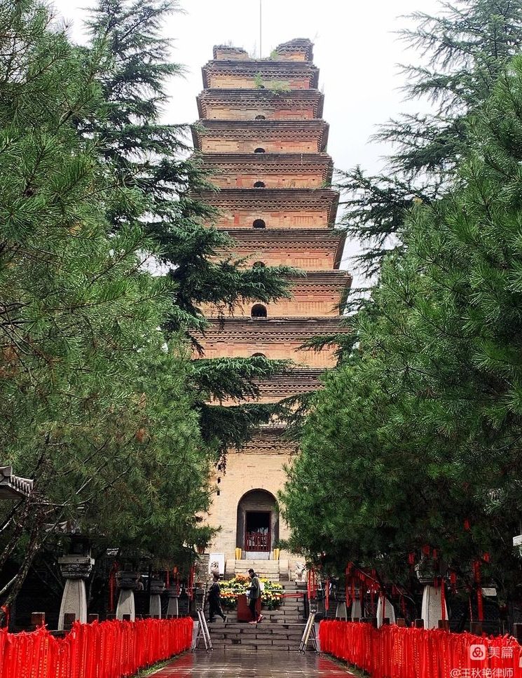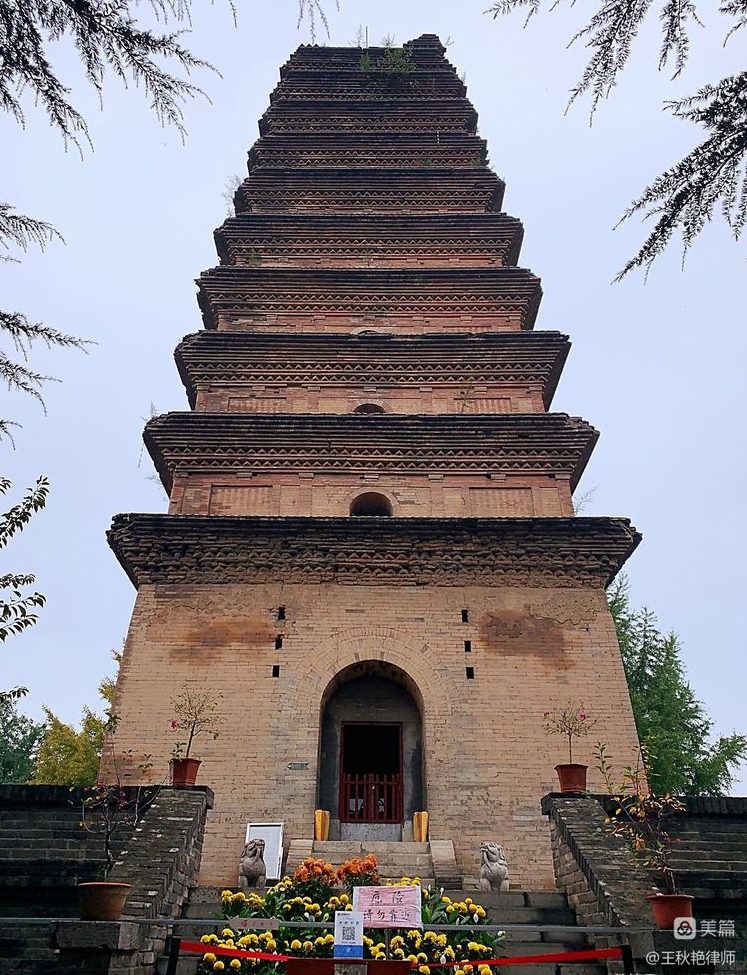 由于年久失修,顶部两层坍塌,目前存十一层,高33米,整体风格与小雁塔极为接近。