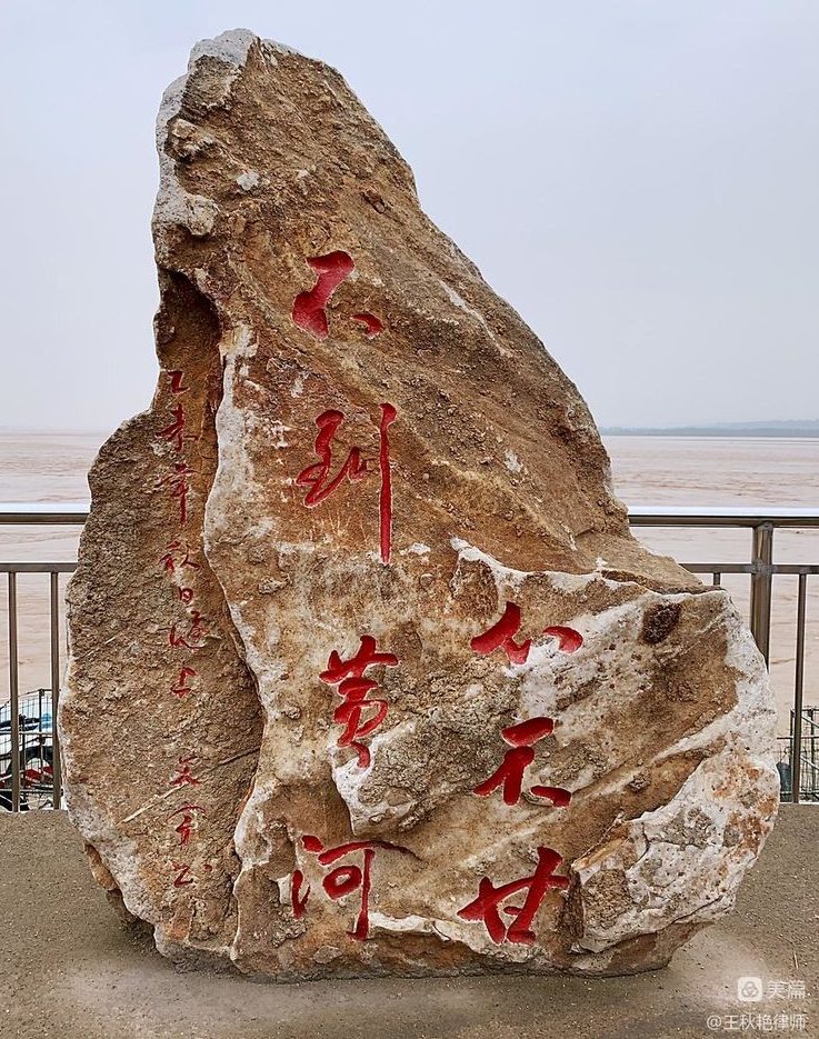 顺着台阶走到了码头处,踩着通向游船的木板,蹲下身子,终于摸到了黄河水。景区内有一块石头,上面写着“不到黄河心不甘”,对于我来说,应该是“不摸到黄河水心不甘”,总算又了却一个心愿了。