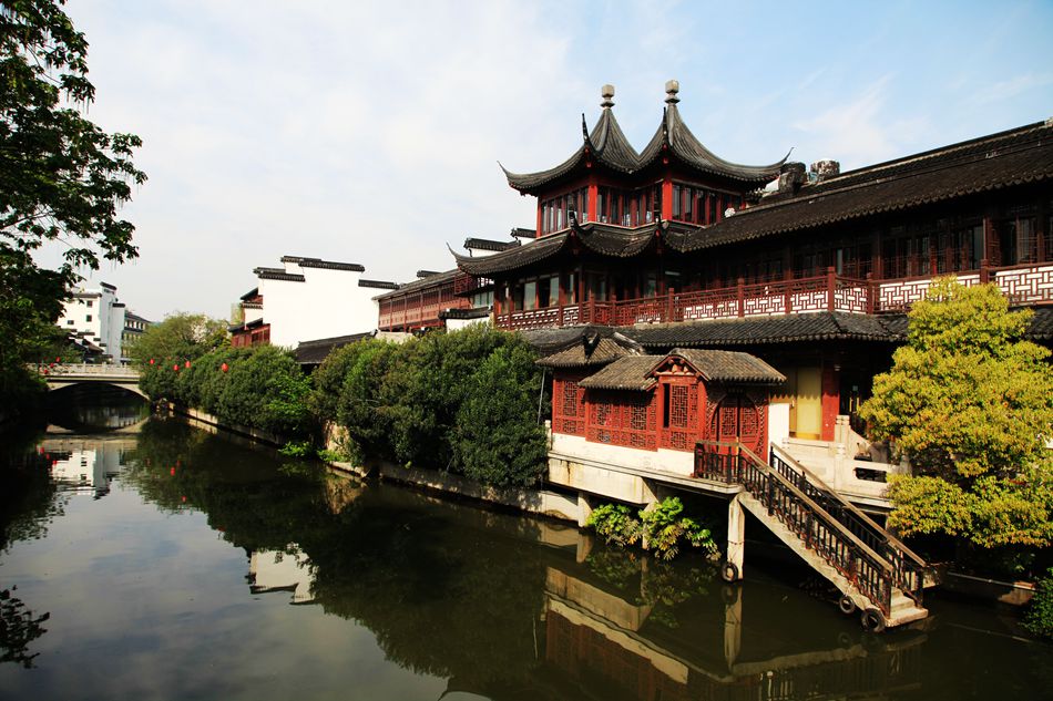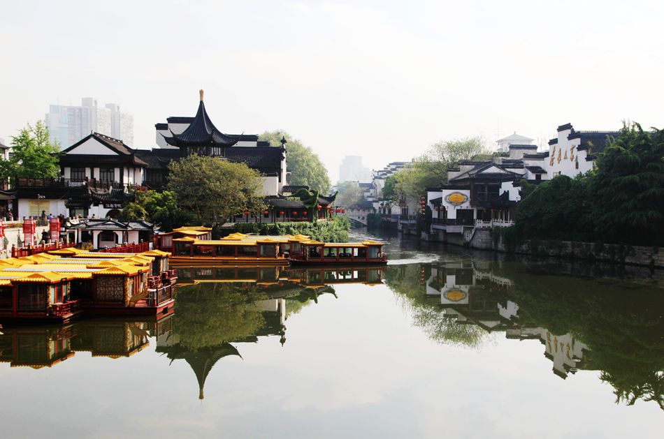 我对秦淮河的认识是从《桃花扇》中得来的,孔尚任的:“浆声灯影连十里,歌女花船戏浊波”还有杜牧的:“烟笼寒水月笼沙,夜泊秦淮近酒家。商女不知亡国恨,隔江犹唱后庭花”,都是诗人对秦淮河的真实写照。前者写的是秦淮河两岸畸形的繁华景象,后者则是对权贵沉湎于酒色的讥讽。如今,由于历史的变迁,十里秦淮昔日繁荣早已不复存在,六朝旧梦,江山、美人也都黄鹤一去,唯有这潺潺的流水亘古不变。