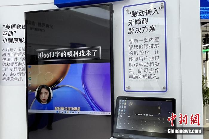 腾讯搜狗输入法展示了“眼动输入”解决方案,其技术原理是,借助一款内置眼球追踪技术的眼控仪,让渐冻症类群体等残障用户通过眼球转动和凝视,即可操作电脑完成输入。并且支持全拼、简拼输入等几种模式,现场工作人员当场演示使用眼球打出一个“hello”。