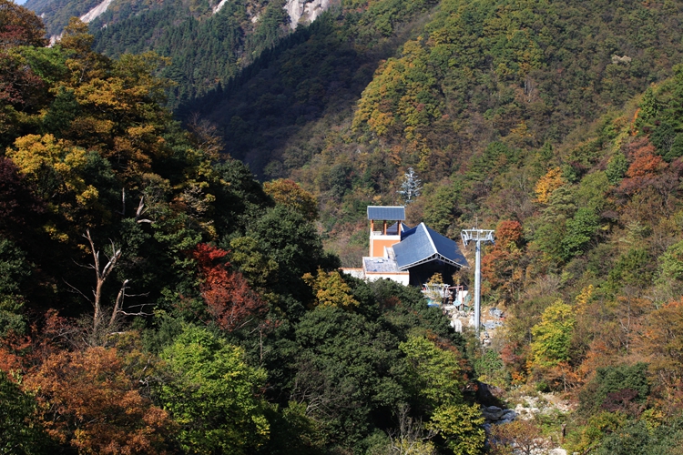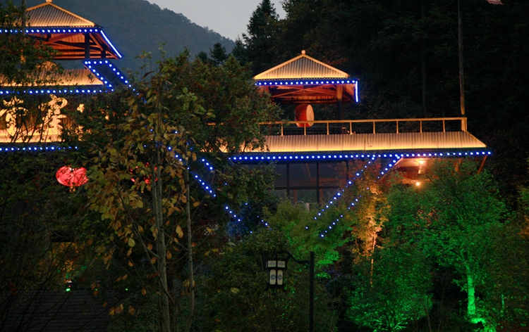 这次到安徽天堂寨是慕名而来,早就听说天堂寨风光秀美,尤其秋天更是美艳,趁此机会前来一睹为快。天堂寨在革命老区大别山,对于大别山我并不陌生,刘邓大军挺进大别山的电影我看过,也看过许多历史资料介绍,所以对革命老区心生向往,早就想来此一游了。从合肥坐了一天车,转山转水傍晚来到天堂寨。入住景区门外的客栈。夜晚,景区大门霓虹灯闪烁,客栈里旅客不多,景区静悄悄。听说天堂寨夏季才是旅游的旺季,因为此地夏天凉爽前来避署的人较多。