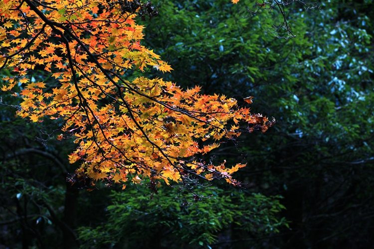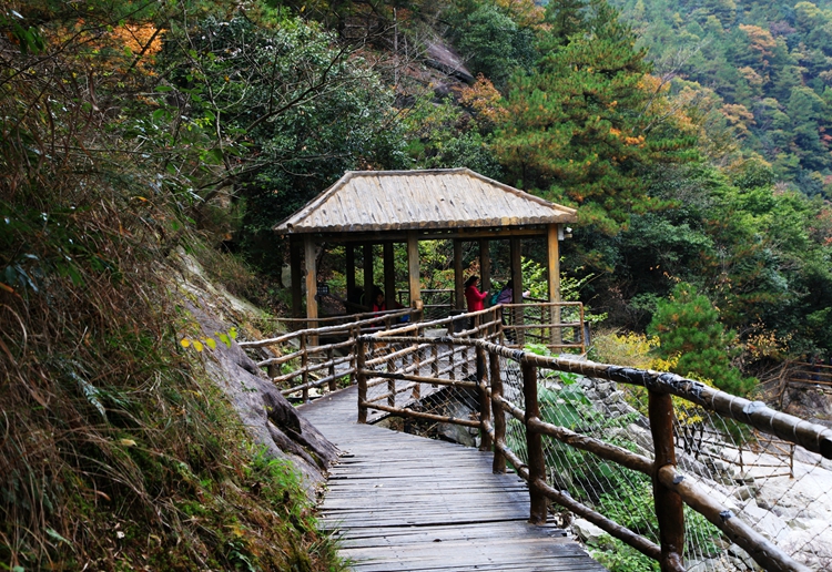 随着太阳的升起,阳光透过树叶,峡谷被割离出光影流离的美感,那金红的叶子更鲜更艳,像一团燃烧的火似乎就要从叶尖上滴下来。不得不说,天堂寨峡谷都是纯天然的景象,青山秀水无雕琢, 漫步其间,处处充满着野趣,让人清爽快意不似在人间。自古及今山之胜,多妙于天成,每坏于人造,自然之趣便荡然无存。其实,真正的诗情画意,流于真实,寄情自然,绝无虚假之痕迹。所以天地而成之景,才会妙于其中,让人回味无穷。
