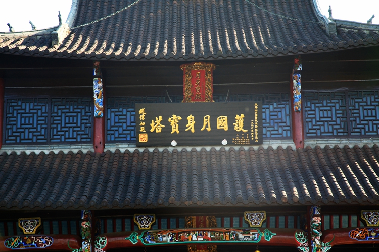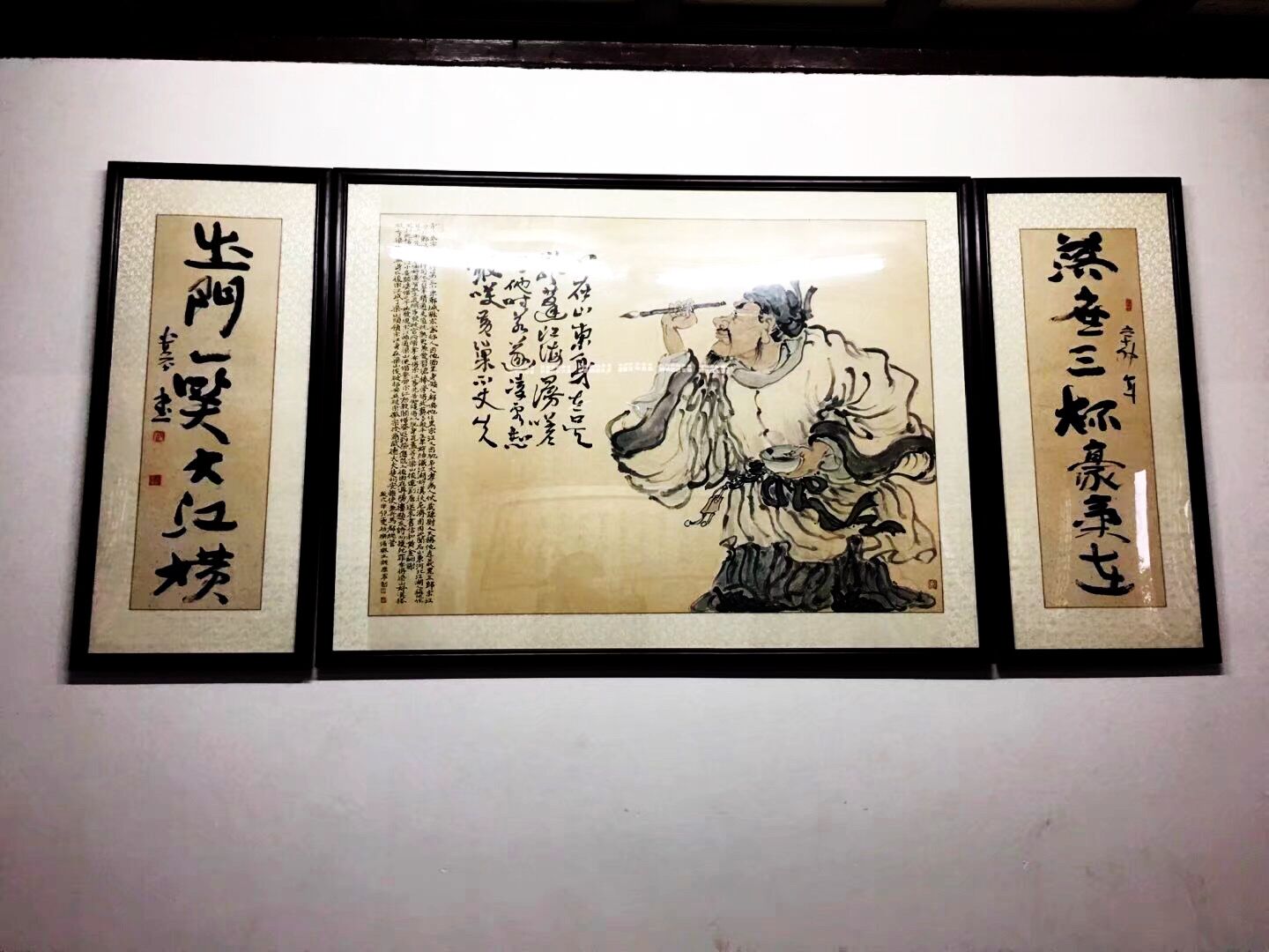 浔阳楼是江南十大名楼之一,因九江古称浔阳得名。这座楼因宋江题“反诗”而闻名天下。我因喜欢《水浒传》里的英雄人物,也读过宋江写的反诗:“他日若遂凌云志,敢笑黄巢不丈夫。”还有白居易的《琵琶行》,一句:“浔阳江头夜送客”使的浔阳楼名传千古。我们来到江边时,大雨如注,买了门票入楼。门匾上“浔阳楼”三个大字是苏轼所题。此时,雨点敲打的门匾啪啪响,像是欢迎我们的到来。