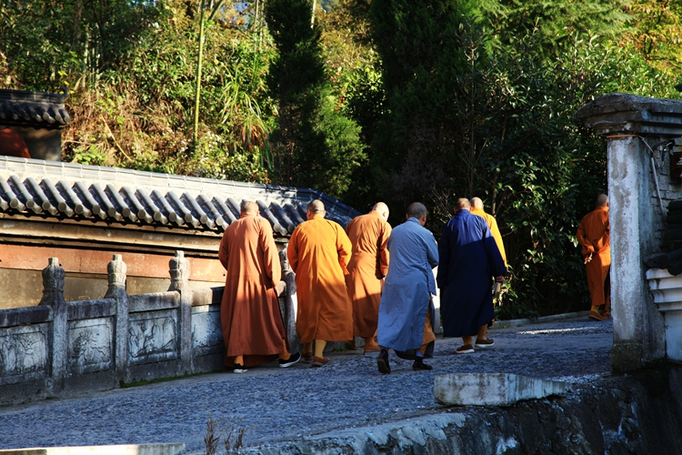 果业师边走边给我们开示,他能从一朵花,一个落叶,讲述人生哲理,他说“花和叶都是有情生命,花开花落,自自然然。花开的时候尽情地绽放,花谢的时候寂静无声。每个生命都在安静中度过,不必要埋怨命运中遇到的烦恼。生命本身就是一支开放的花朵,有它的坚忍不拔,有它的自由从容,时光虽然不在,可是还有下一朵花开。”看着果业师云淡风轻的面容,不由的心生敬意。师父是在教我们,认识生命,尊重客观规律,既要全力以赴,又要顺其自然,才能活出清净自在,畅明豁达的人生。