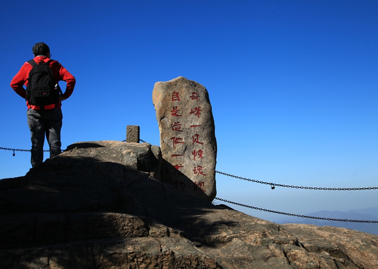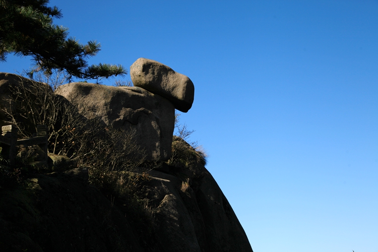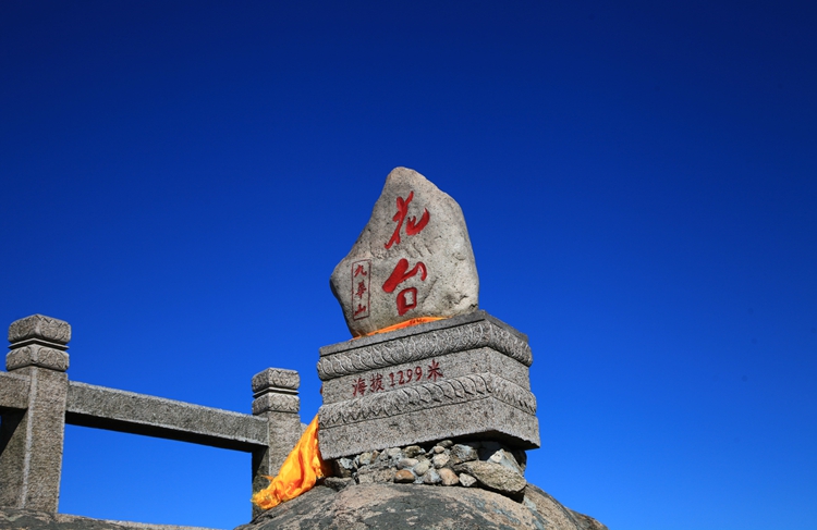 花台景区属自然风景区,原始、古朴、纯净,清新。花台顶上矗立着一石碑,上书花台两个大红字。站在山顶眺望,一览众山让人有睥睨天下的感觉。下山途中,还看见了如意石、平安松、仙人倒晒靴等景观。回来查资料才知道,仙人倒晒靴竟跟李白有关,回看图片,仙人的神态,举止和浪漫的情怀,使人百看不厌,晒靴子偏偏倒来,让人永远猜不透其中的奥秘。人移景换,左看右看都是山峰,这些神态各异的峰峦,嵌在面前,就是一幅画,一幅有着远近景的匾额。在九华山上转了一天,脚底板磨起了泡。但看了九华胜景,感受了气象万千,所有的付出都值了。