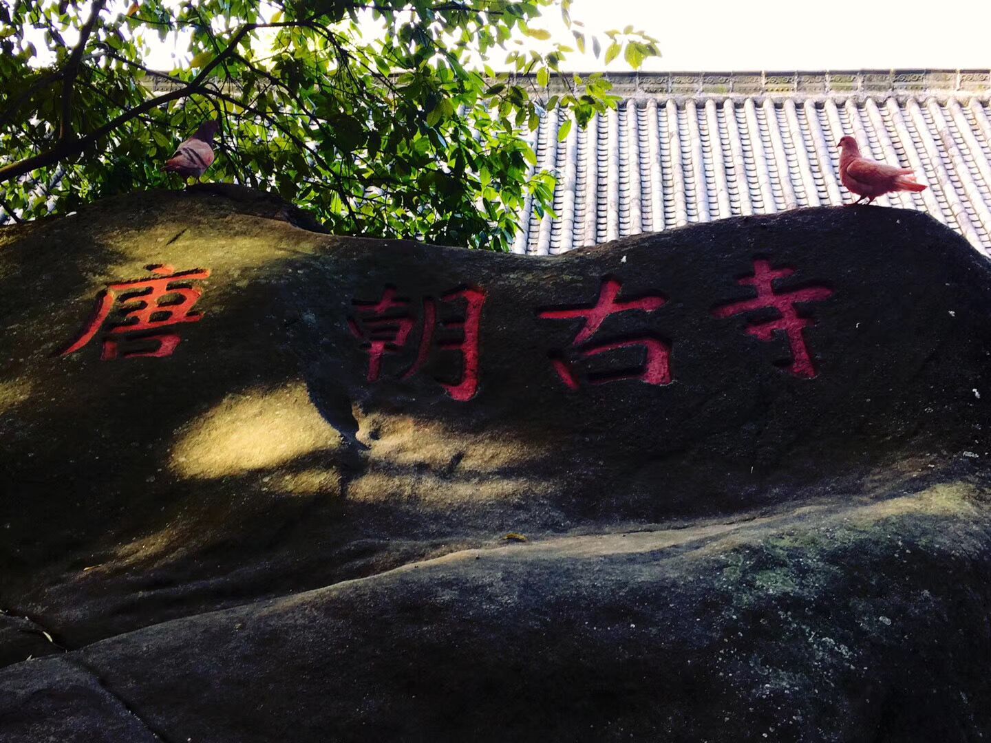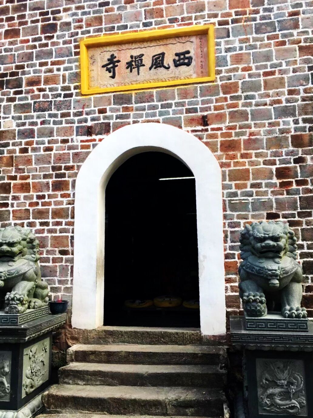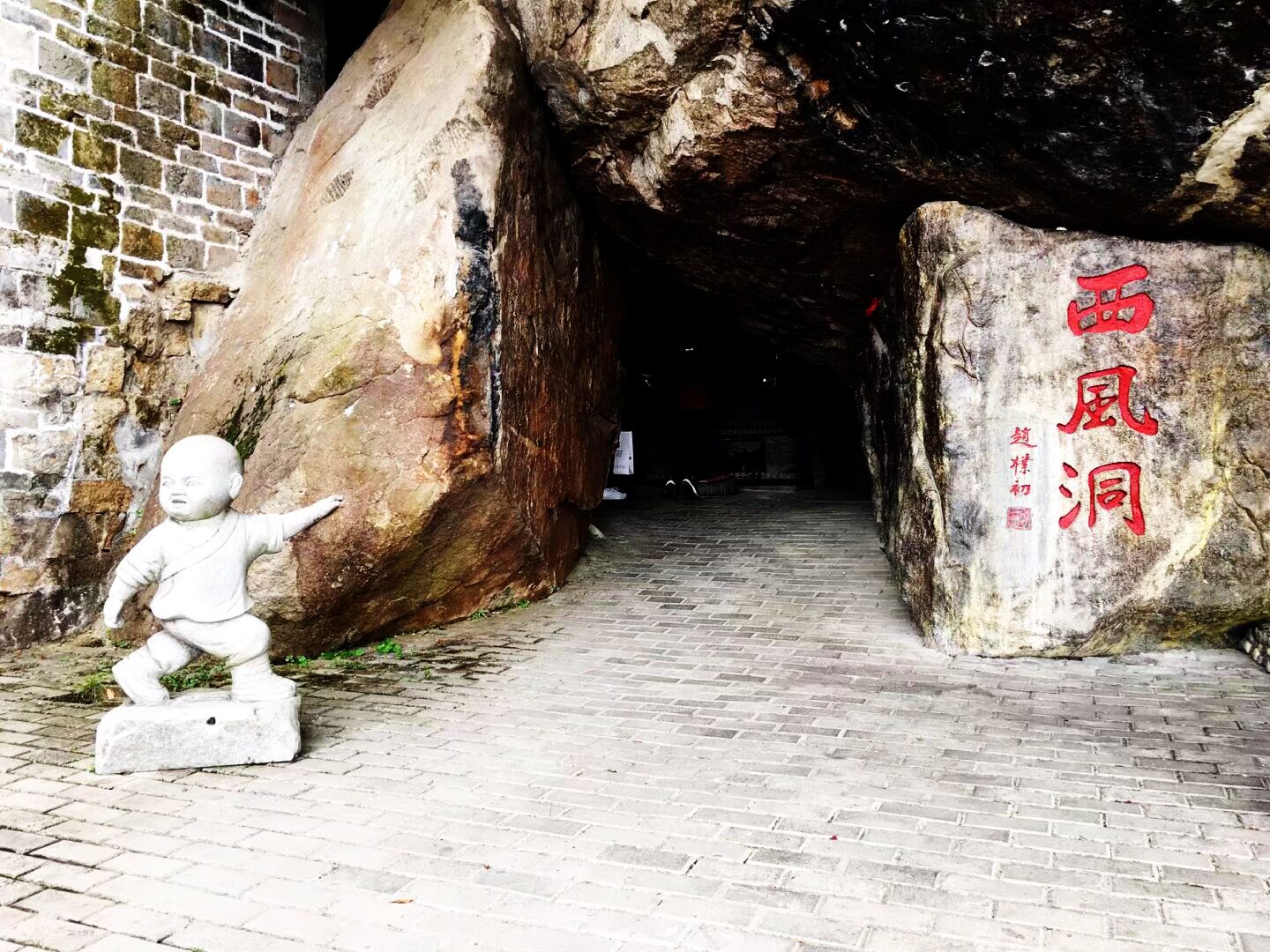 来佛光寺的第三天,果业师父亲自带我们去参观太湖的“西凤禅寺”。 这是一座千年古刹,建于唐朝,拥有悠久的历史。西风禅寺因为西风洞而得名,这是一座天然形成的洞穴,洞口非常狭窄,但走进去却别有洞天。因风从洞口而入,故命名为西风禅寺。这名字起的够直白的。我们跟着果业师父免了门票。进的山门,满目的清翠,景色甚是清幽,还有一座座黄墙朱瓦,飞檐翘角的庙宇。跟着果业师参观,不看不知道,看了甚为惊叹,这里有自然和人文景观三十多处,寺周石刻遍布,上面有大诗人李白、黄庭坚等人的墨宝等。