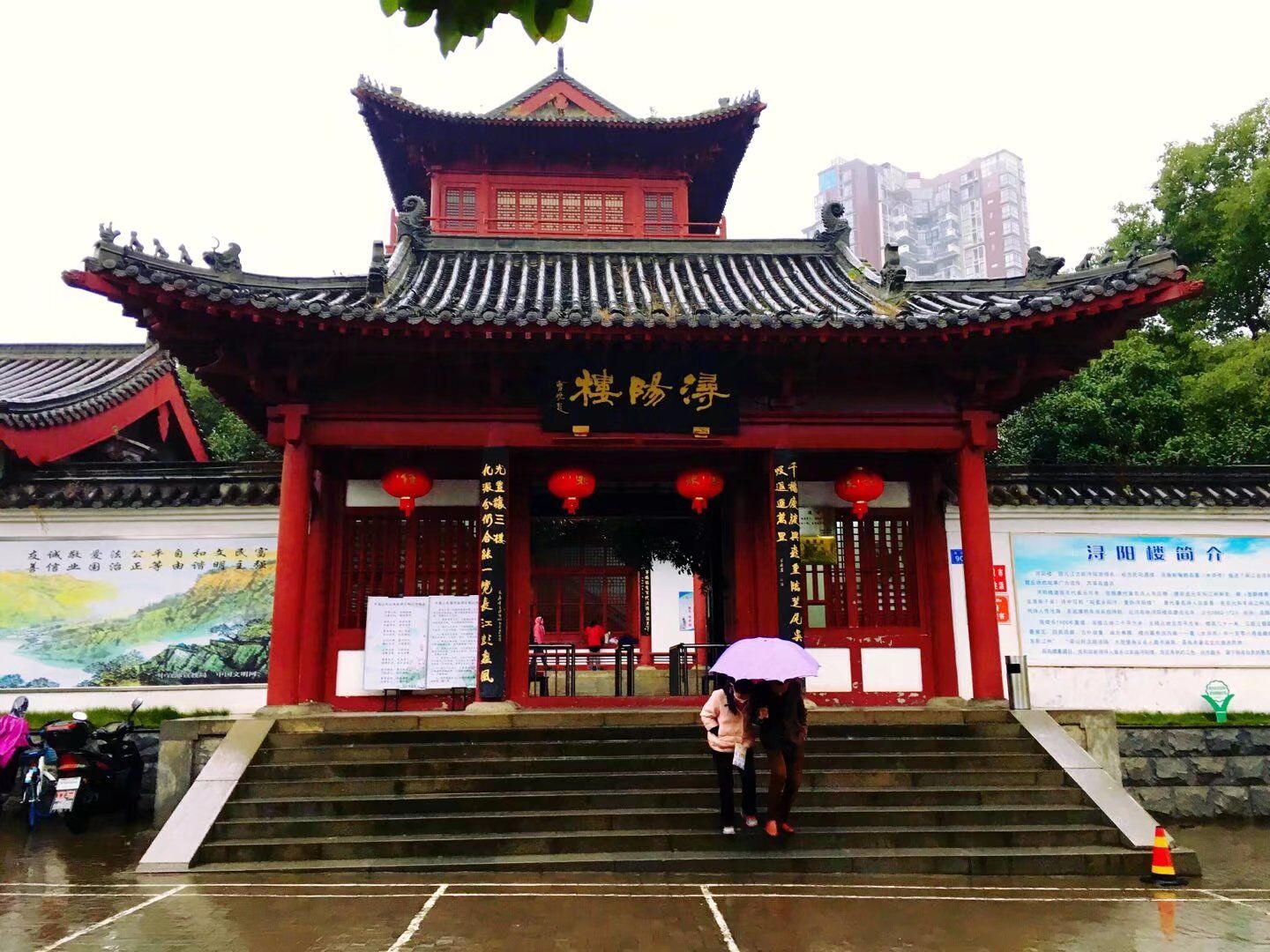 清晨,从太湖乘火车至九江约1小时车程。下了车既遇大雨,打车至预订的旅店,准备在此住一晚。做江西攻略时,我把九江做为中转站,因离太湖近,所以选择在此落落脚。九江这座城市我并不陌生,这次是第三次来九江了。以前二次跟团来庐山,当年车行至江边时,我看见了浔阳楼,可是无缘下车观赏,匆匆而过了。这次就是为了浔阳楼才逗留一天。入住旅店安顿好行李,看看天气仍在下雨,算算还有一整天的时间,不能白白浪费在旅店里,所以打着伞冒雨去浔阳楼。