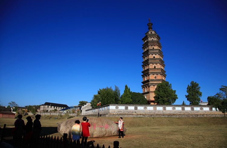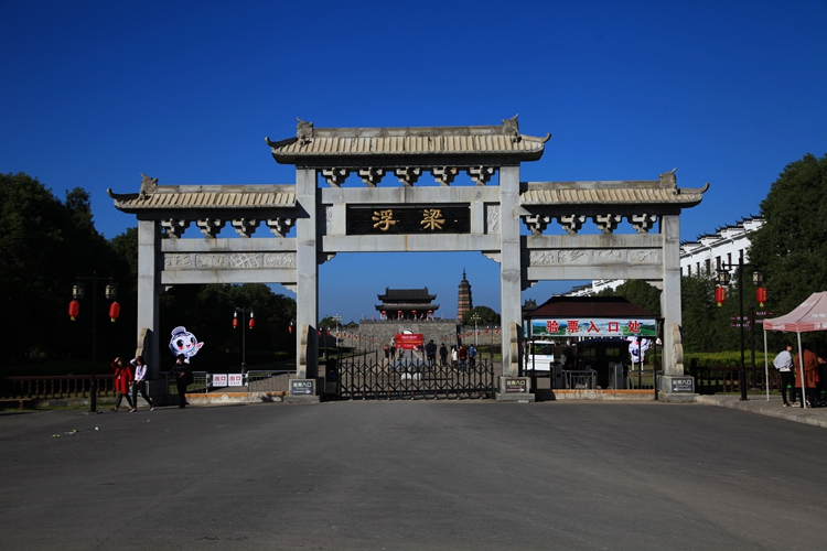 跨过城门,一道道大牌坊矗立于蓝天下,路旁竖着黑白杆的路灯甚是漂亮。右行不远,既见一座宝塔,此塔只能远观不能登塔,听说这就是著名的红塔。此塔建于北宋年间,逾今有千年的历史,称江西第一塔,素有浮梁“古代城徽”之誉,是古老浮梁的象征,历史的见证。游客行至此处,都纷纷与这座千年宝塔合影留念。我数了数,这座塔有九层,瘦削挺拔,形如春笋。站在塔下,闻古塔风铃,思千古之幽情,不胜感概。