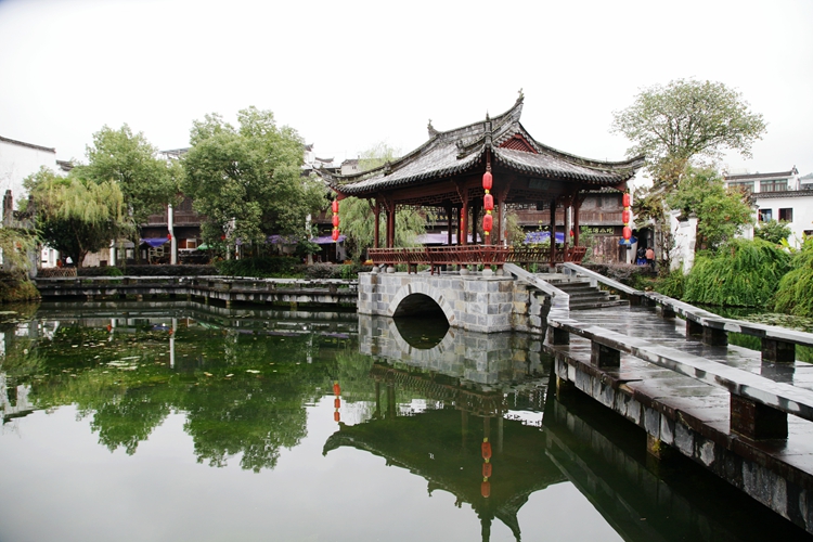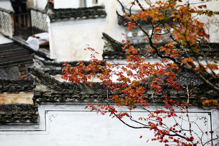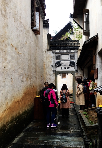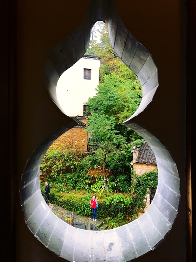 尽管是雨天,但仍人来人往好不热闹。我们在村子里兜兜转转了一整天,还看了绣楼、官厅、宗祠等。穿棱在徽派建筑群的街道,赏飞檐翘角花格窗,一座座,一件件,凝固着流转不尽的沧桑和漫长。老建筑在流年里洗礼,风吹雨淋,保存的这么完好,实在是不易。我在感受徽派老宅院的沧桑之余,还留意到了细节之处的雕刻,从门窗到房梁,雕刻精美,细腻浪漫,弥漫着淡淡的温馨。我尤喜粉墙上别具一格的雕花小窗,小巧灵珑,让人爱了。