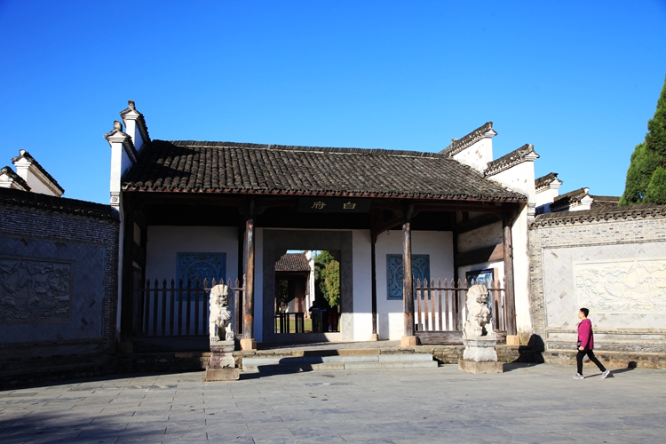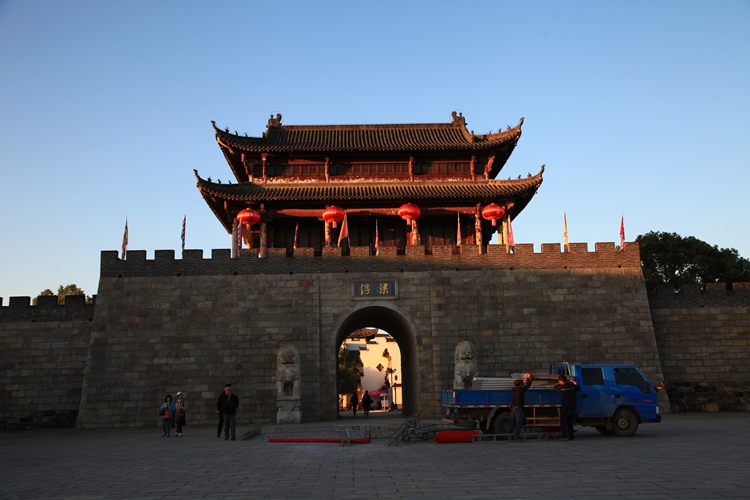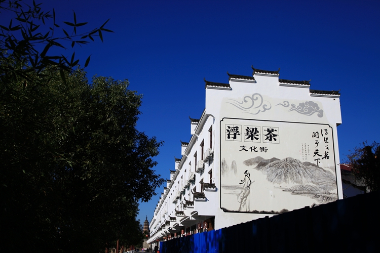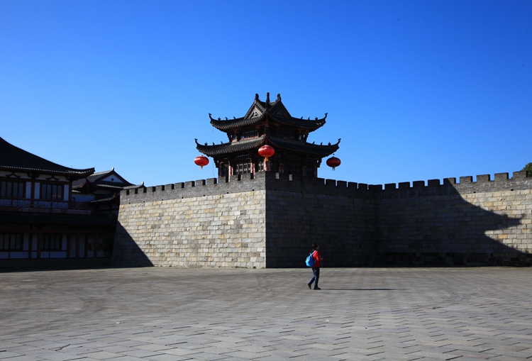 景德镇并不是仅限于陶瓷,浮梁古城也很有看头。我们是中午来到浮梁古城的。下了车既见一座写着浮梁二字的大牌坊,一条笔直的路通向后面的古楼。这条路用贴地瓷砖的形式讲述了浮梁的概况,以及悠远流长的官文化、瓷文化和茶文化。路的两旁有店铺,因游客不多,大都关着门。行至城门下,两只石狮子威严的守在门侧,抬头仰望,城楼古色古香气势恢宏。一拉溜的青石围墙也甚是气派。
