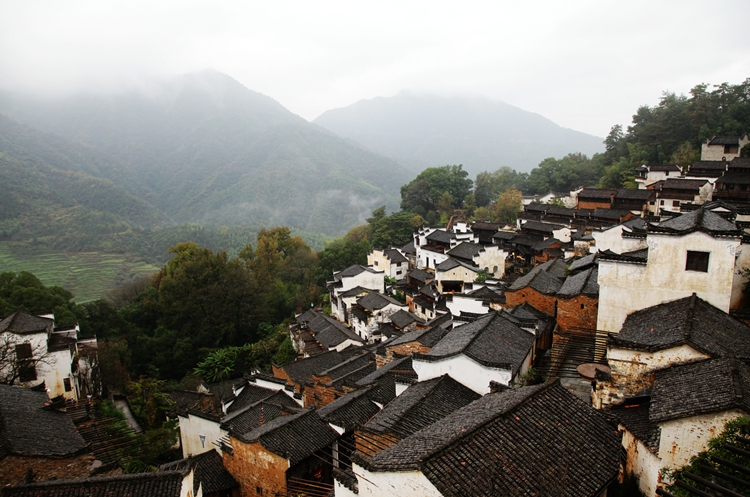 清晨,离开篁岭冒雨去石城。没想到开往石城的班车只开到山脚下,上山需另打车。我想起那年来婺源也是因为交通不便没去成,而今六年过去了,怎么还是这样呢?真是让人费解。也可能是地方保护吧,“要想从此过,留下买路钱”哈哈,说笑了。