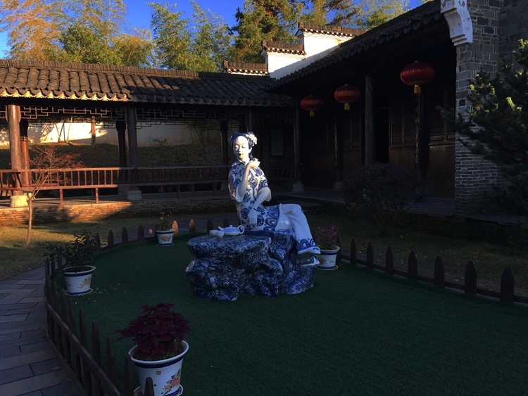 在县府衙后面有一座幽静的花园,景色非常迷人。走进去既见香山别墅。听说这座别墅是为唐诗人白居易所建。白居易的“琵琶行”里面有一句“商人重利轻别离,前月浮梁买茶去”写的就是浮梁。古时浮梁还是茶的集结地。回来查资料才知道,《琵琶行》里那些耳熟悉能详的名句都出自浮梁。如:“同是天涯沦落人,相逢何必曾相识”,还有“千呼万唤始出来,犹抱琵琶半遮面”、“此是无声胜有声”等,真是让人长知识了。