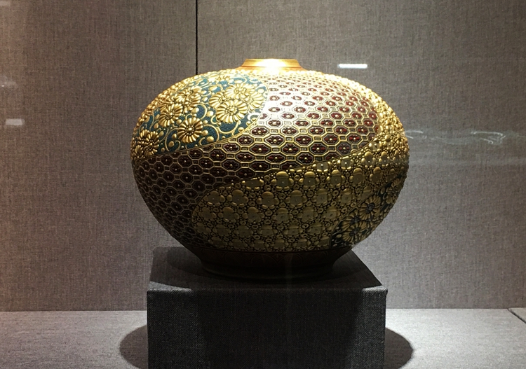 在博物馆的顶层展厅里,还见到了日本陶瓷艺术家现场制作陶器,不得不说,小日本造的陶瓷也很出彩,具有温情含蓄雅致的特点。一个亭亭玉立的花瓶吸引了我的目光,这个花瓶爱玛仕色,精工绘制,温润细腻,漂亮极了。尽管,我不喜欢日本,但艺术无国界,美的东西属于全人类。博物馆里有免费的讲解,在一、二展厅里我听过讲解,后来只顾着拍照了就没有听。我觉得这个博物馆好,让游客随便拍照,有的博物馆是禁止拍照的。