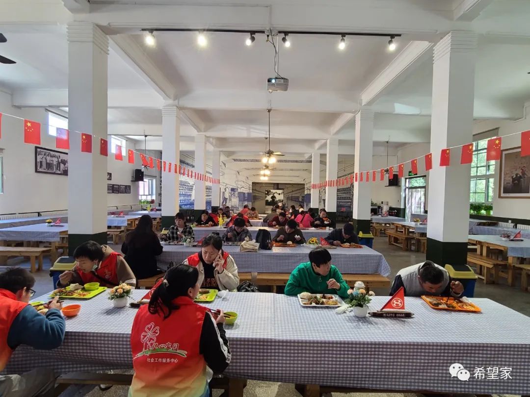 不知不觉已经到了中午,最后一个环节是在原八棉大食堂集体用餐。集体大食堂用餐可以提供一种独特的团体活动体验。在用餐过程中,特扶家庭成员之间可以互相交流、分享食物和经验,增进彼此之间的了解和友谊。这种团体活动可以增强团队的凝聚力和合作精神,提高团体组织的归属感。