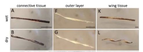 换言之,不实野燕麦的种子是一种湿气驱动的生物引擎。而这种通过湿气实现的自主运动被称为吸湿运动(Hygroscopic movement)。