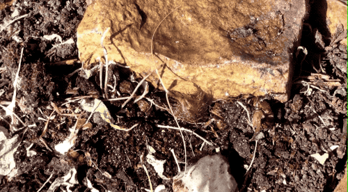 看,“天线饱苞”自己钻到石头缝下面去躺好了。
