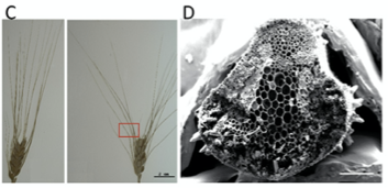 野生小麦很容易脱粒,因为控制它的是显性基因。但是在小麦驯化的过程中,会脱粒的小麦被人类刻意淘汰了。然而,被驯化且还有芒的小麦的躁动基因还保留着,它们的种子依然会根据环境湿度的变化动次打次——