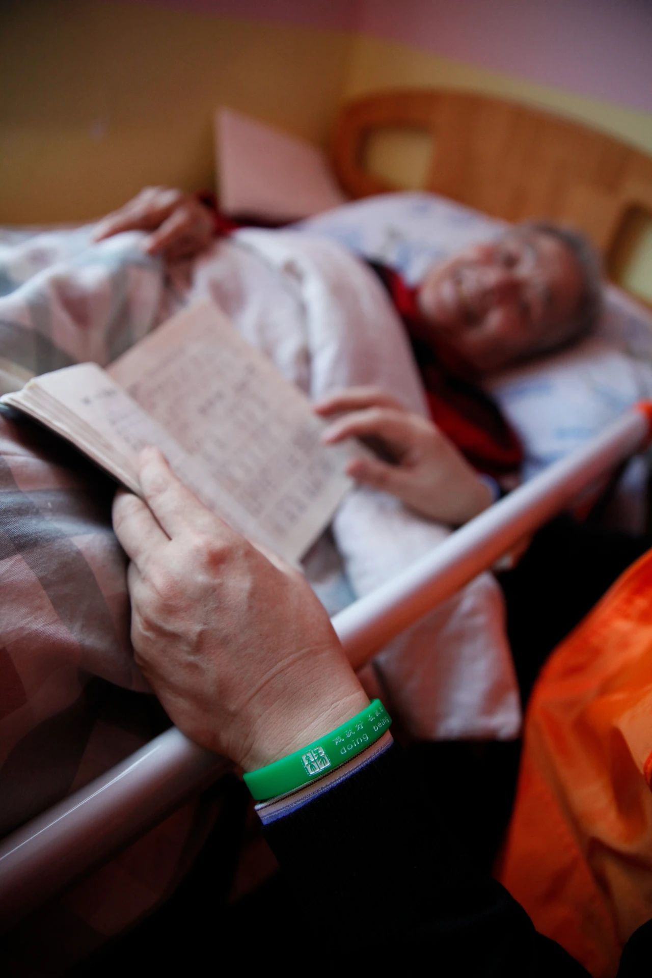 图片十方缘志愿者为卧床的老人读书。摄影/张旭