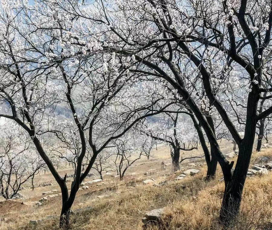 年年花相似,岁岁心不同。每年去看杏花,我都会感慨万千,青丝变白发,在这里,我看到了生命的美丽与短暂,看到了遗憾与希望并存,看到了自然的力量和生命的顽强,看到了每一朵杏花独特的美丽和价值。杏花如纱,一层层的疏影相叠,在隐约的繁花尽处,触动思念的痛,那远去的故人轻轻划过花开的彼岸,浅浅、由由……;杏花似梦,一帧帧的交织浮现,在袅袅的杏音深处,找寻遗失的梦,在透过枝梢的阳光与澈净的天蓝间,渐渐、远远……;杏花成赋,一章章的追思记忆,在纷纷的悄然洒落,梦幻与现实间,在花白如雨中一点一点地加深暮色,依依、离离……