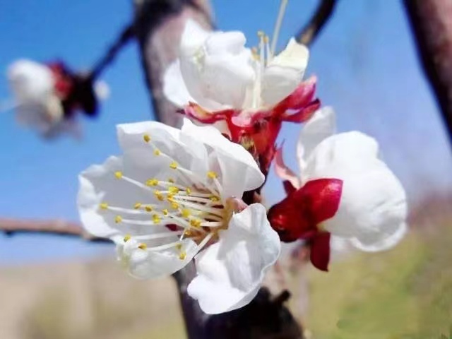 杏花如诗,杏花如画。花瓣如玉般洁白无瑕,宛如少女的裙摆,轻盈而柔美,花蕊则淡黄如金,在阳光的照耀下显得格外娇艳,每一朵杏花都像是一个精致的小精灵,它们在春风中轻轻摇曳,它的香气淡雅而清新,让人心旷神怡。那种清雅脱俗的美,不像牡丹那般浓艳,也不像梅花那般孤傲,像一个温柔的少女,淡雅中透着娇羞,给人一种温馨的感觉。每一朵杏花都仿佛是一个美丽的梦,让人陶醉其中,流连忘返。