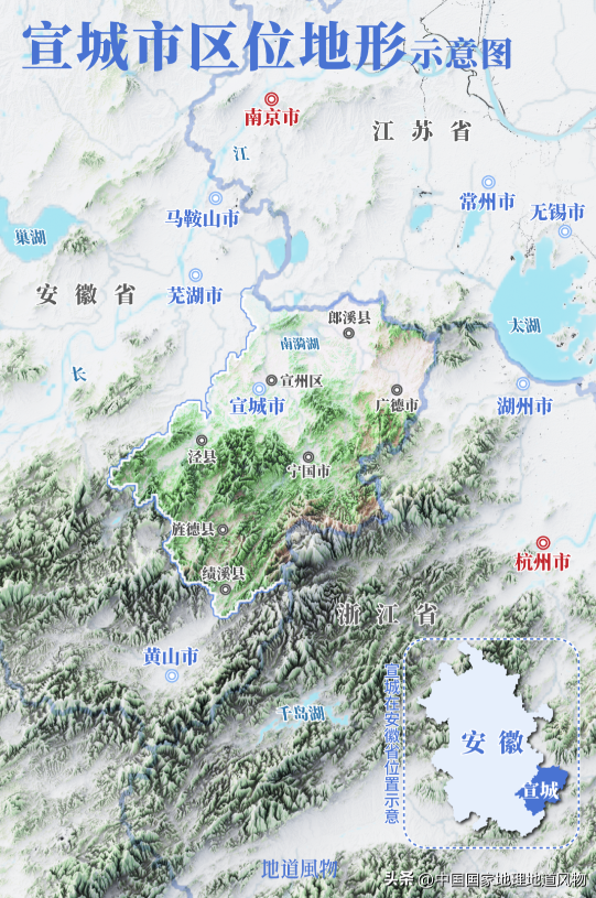 宣城能够获得先发优势的主要原因在于地理位置优越。与南边隐藏于群山深处的徽州不同,宣城位于丘陵外缘,依山傍水,扼守在长江皖江段与太湖平原之间的必经之路上。如果不从宣城经过,就要从太湖北面绕一大圈。因此,杜牧有诗赞誉道:“土控吴兼越,川连歙与池。山河地襟带,军镇国藩维。”这一区位特征一直延续到清代,如果把江苏省城南京、浙江省城杭州、安徽省城安庆连线,宣城正处在这个三角形的中心位置。