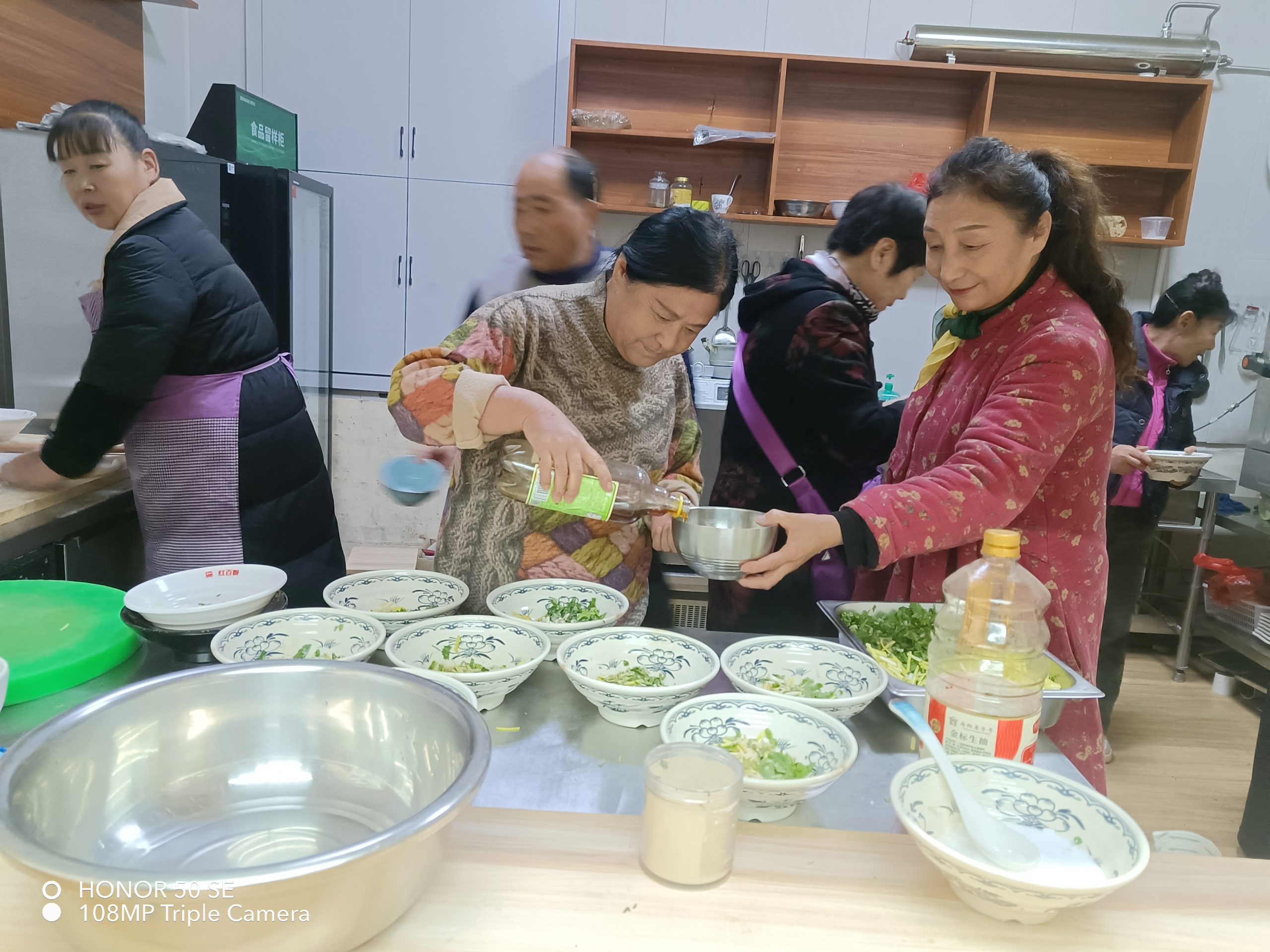 露凝霜重渐倾欹,宴赏才过小雪时。11月25日,在漯河市幸福沙澧社区服务中心和夕阳红老年服务中心椿萱互助暖心驿站的协助下,近20位特殊家庭老人在队长张玉凤的带领下,在海河社区日间照料中心共享食堂举办“敬老爱老”传统丸子宴。
