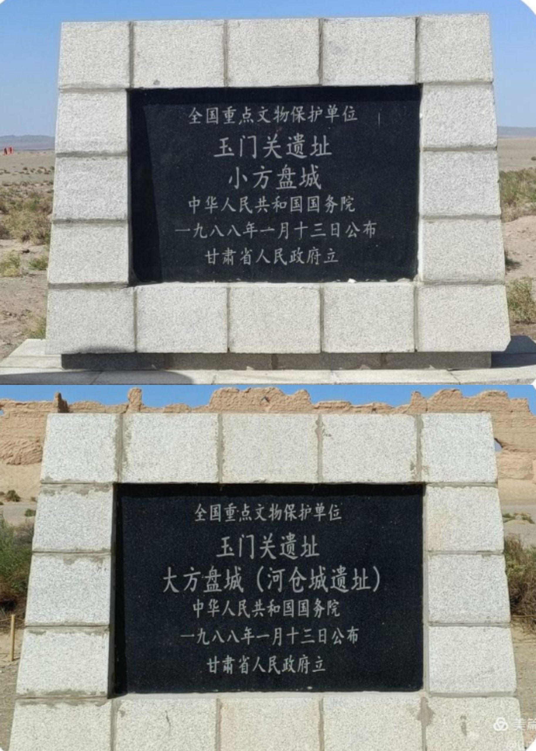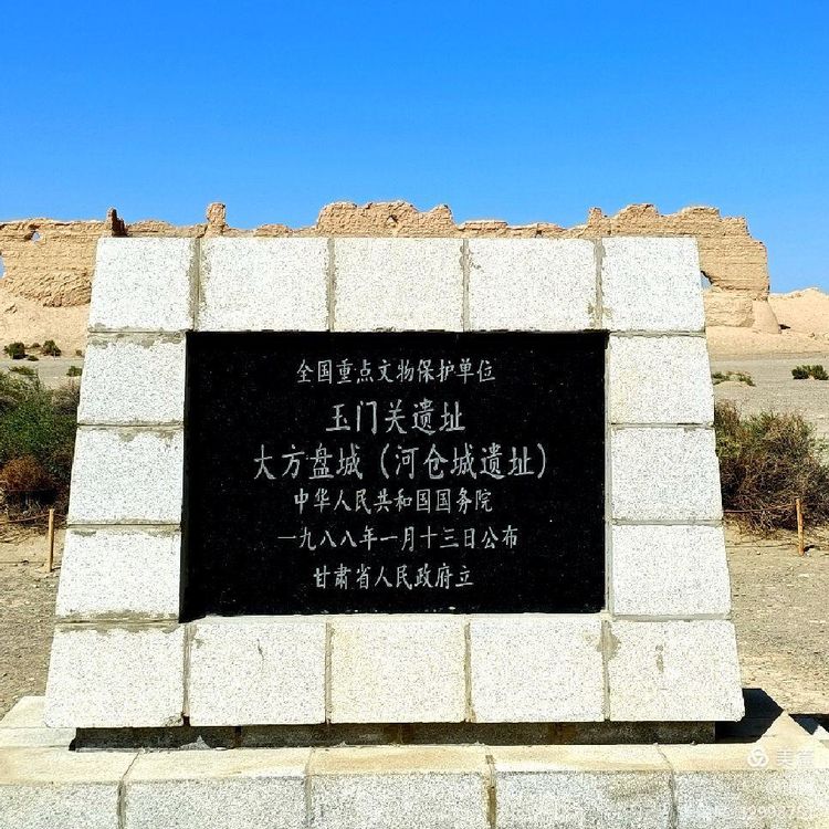 (图片:玉门关遗址有汉长城边墙、小方盘城、大方盘城三处游览观赏点,此图片为大方盘城观景处,这里最早为军队之粮库,地势较低,不易被敌发现。)