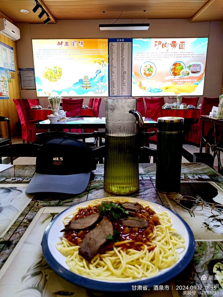 (图片:游完鸣沙山后就近一盘敦煌知名的美食——驴肉黄面作午饭)