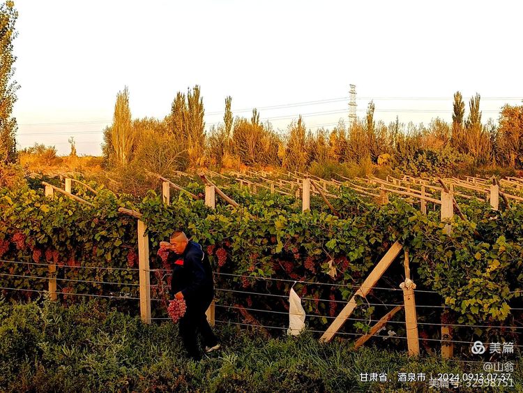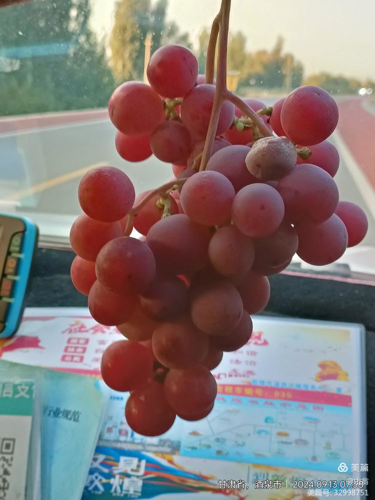 (图片:车行城郊,但见路两侧遍地即将成熟的葡萄,的哥随即停下车来,採来一串鲜美“珍珠”)