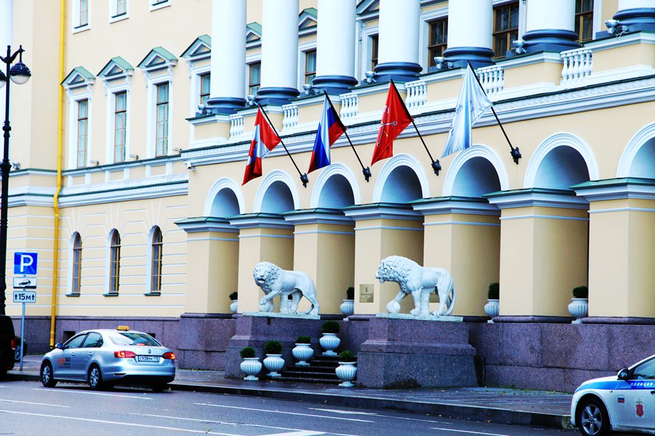 导游介绍,青铜骑士雕塑是圣彼得堡第一个骑马塑像,它堪称世界艺术的杰作,它耸立在广场正中心,无论从哪个位置或从哪一视角看都会让人们惊叹它无穷的表现力。我围着雕像在不同的角度拍照,导游建议大家在雕像前合影留念。与青铜骑士像为邻的是一座淡黄色的建筑,听说这是东正教最高会议大楼和海军部大楼。