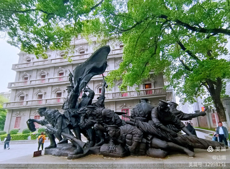 (图片:八一起义指挥部、原江西大旅社楼前广场群雕)