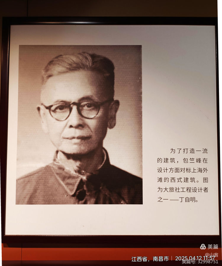 (图片:江西大旅社的主人为包竺峰等三人,图为设计者——丁自明)
