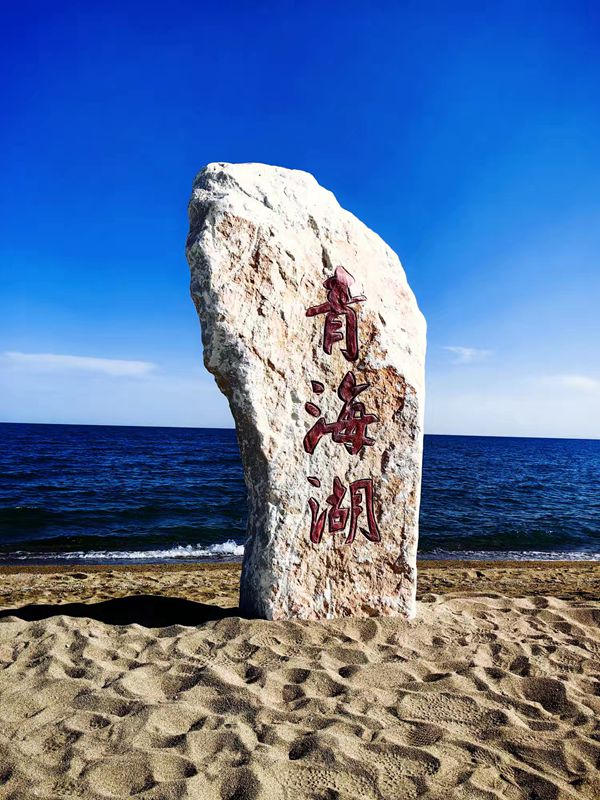 二郎剑景区得名于伸进湖中的半岛,形状如同一把利剑插在湖中。走到岛的尽头,看见一大石头,上书“青海湖——二郎剑”几个大字。站在这里,仿佛置身于湖中央,周围环绕着湛蓝的湖水,让人有一种缥缈之感。远处有几艘游船驶过,在湖面上划出一道道优美的孤线,美极了。这里是码头,游客可在此乘船环湖游,可惜我们受时间限止登不了船,只能在岸边拍拍照片了。