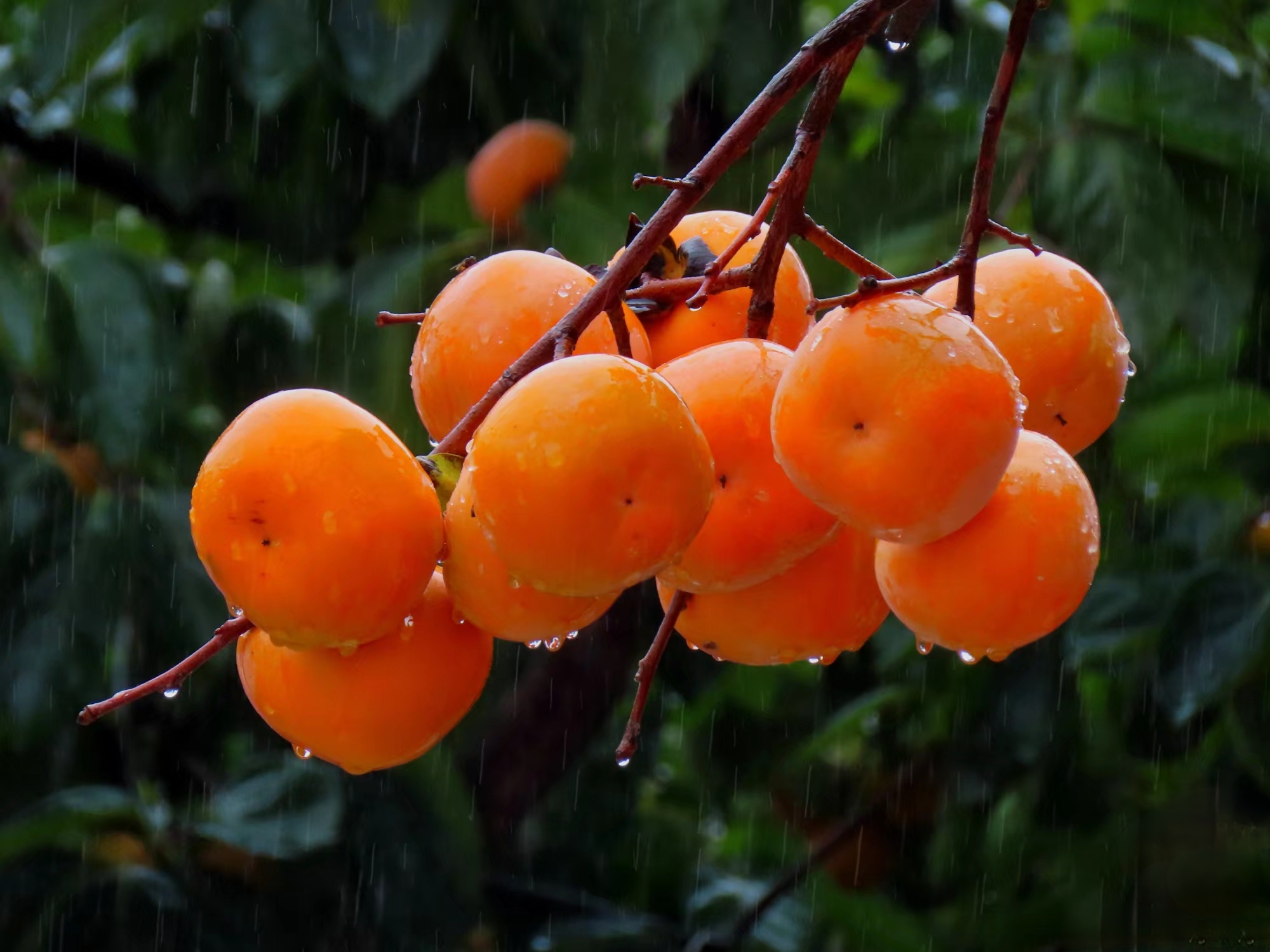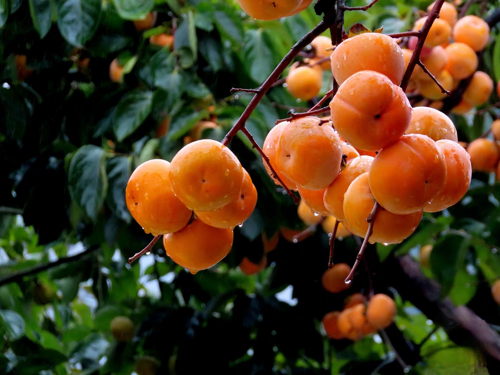 雨中的柿子愈发红得透亮,晶莹如珠,挂满枝头,宛如点亮山野的灯笼,正应了那句“喜柿多多”,寓意着“事事如意”的美好祝愿。