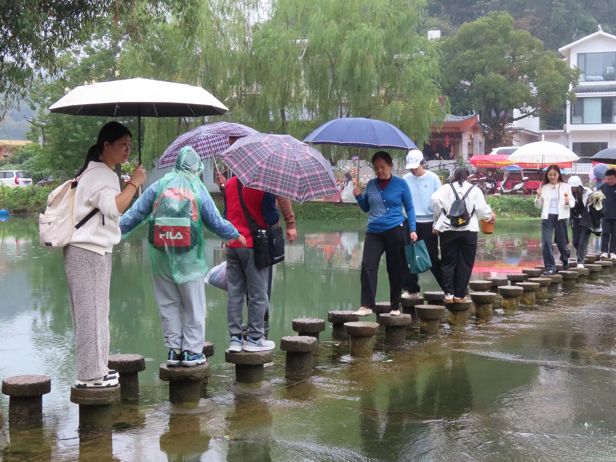 游客们兴致不减,踩着河中错落的石墩,跨过潺潺流水,步步向深处的柿林迈进,仿佛奔赴一场与秋日红霞的约定。