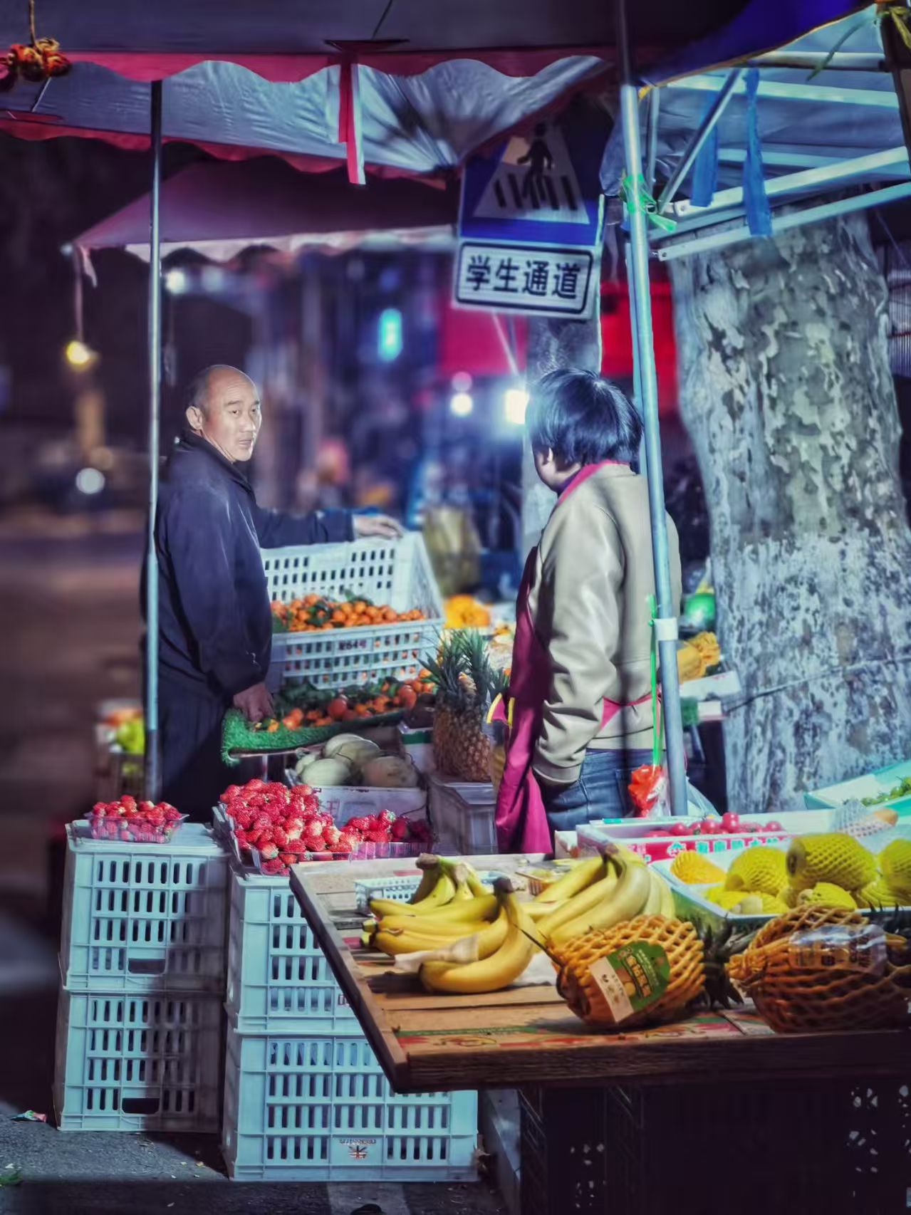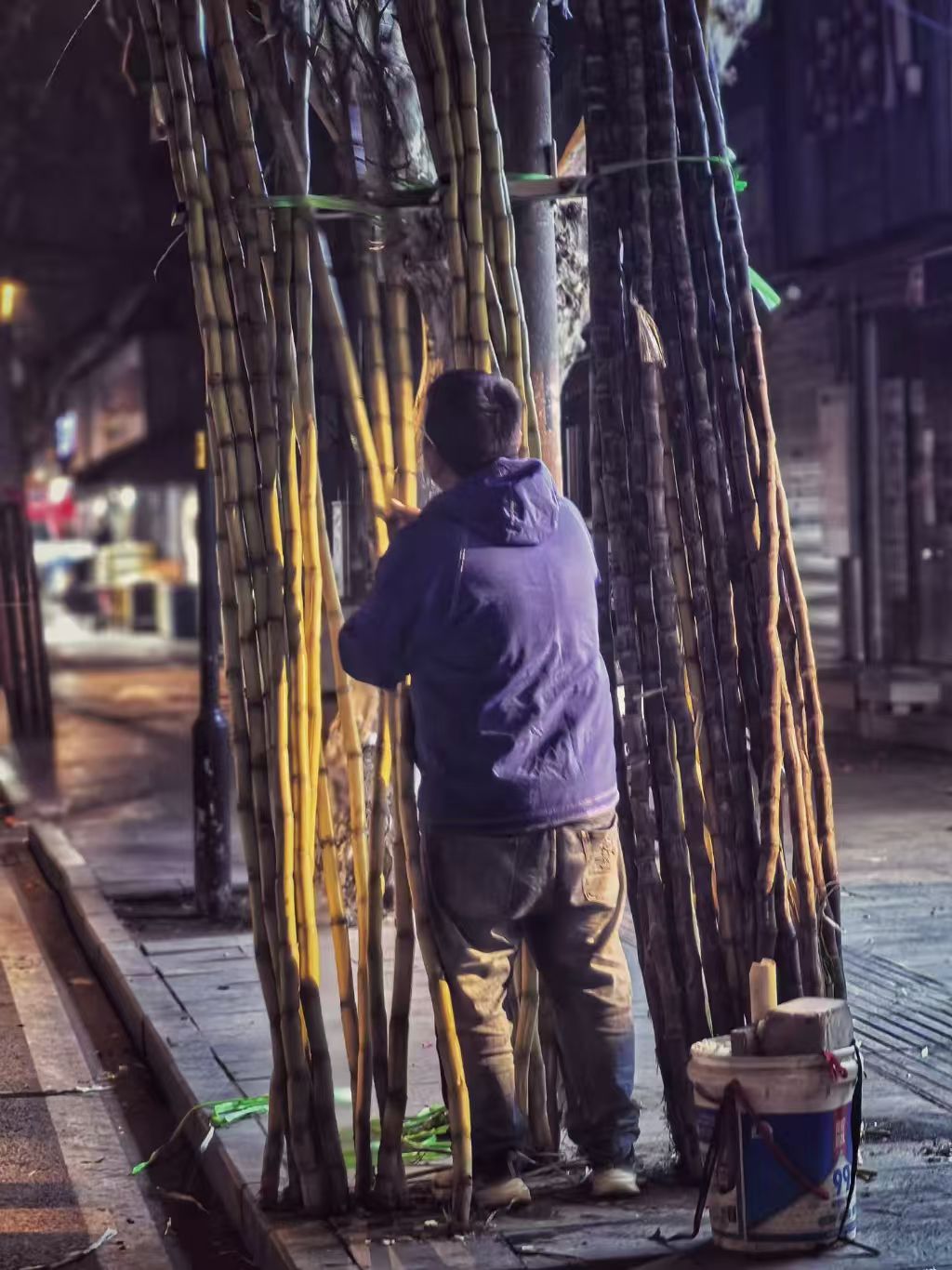发布于2026年4月8日2026年4月7日 由xiaojuan祎璠手机摄影 | 夜巷烟火 晚9点50至10点,走过夜巷的十分钟,夜色漫过街巷,灯火点亮烟火。 果摊前,摊主细心打理鲜果;甘蔗旁,匠人默默削去外皮。棋桌前,老者对弈落子;小店中,食客等候烟火。每一盏灯,都暖着奔波的人;每一处摊,都藏着生活的温软。