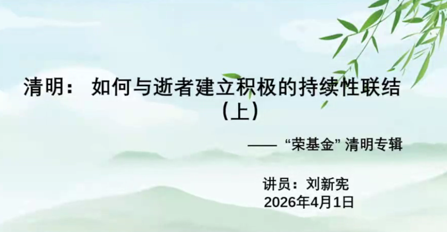 清明时节,慎终追远,是中华文化中表达思念与连接的重要时刻。受荣基金邀请,我有幸在这一特殊时节分享“持续性联结”的主题。传统观念中,人们往往认为哀伤的目标是“放下”与“告别”,但现代哀伤研究逐渐指出,与逝者保持一种健康、适度的心理联结,不仅不是问题,反而是走向适应的重要路径。