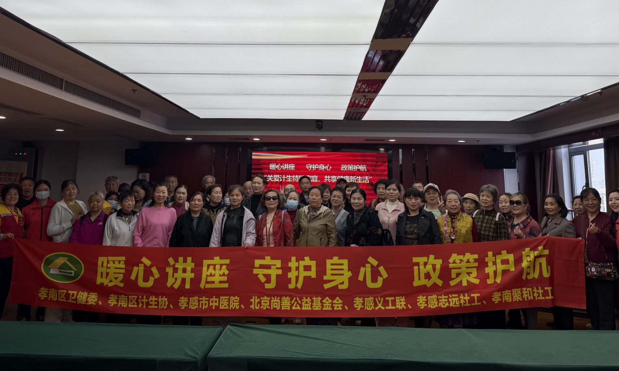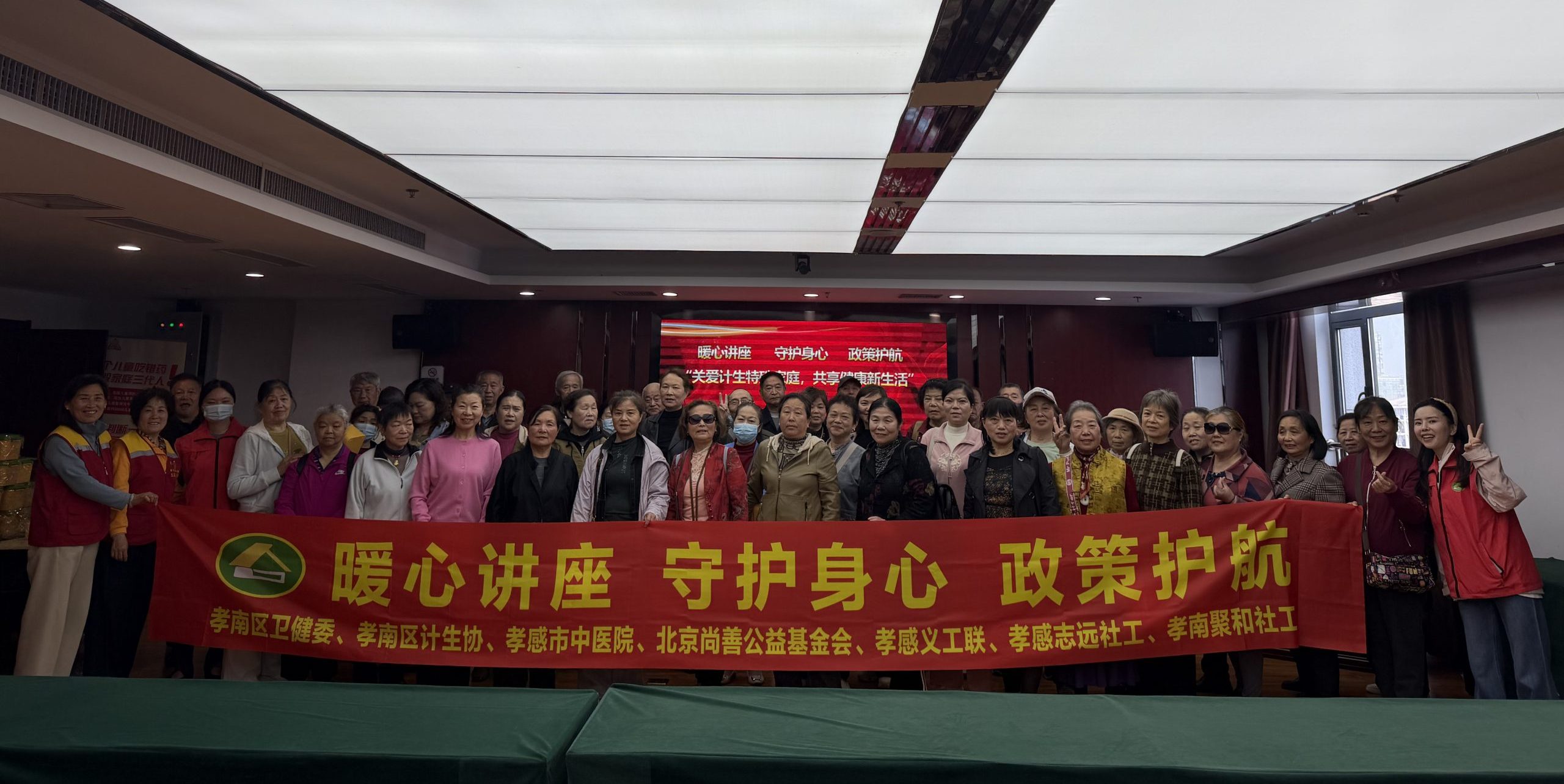 2026年4月25日上午九点,孝南区计生协会联合北京尚善公益基金会、孝感义工联合会,在航空路孝感中医院六楼会议室,为计生特殊家庭的老人举办了一场暖心又实用的健康知识讲座暨家庭医生面诊活动。