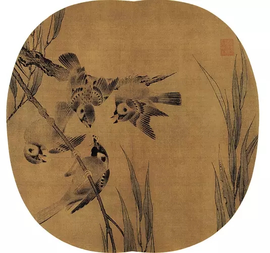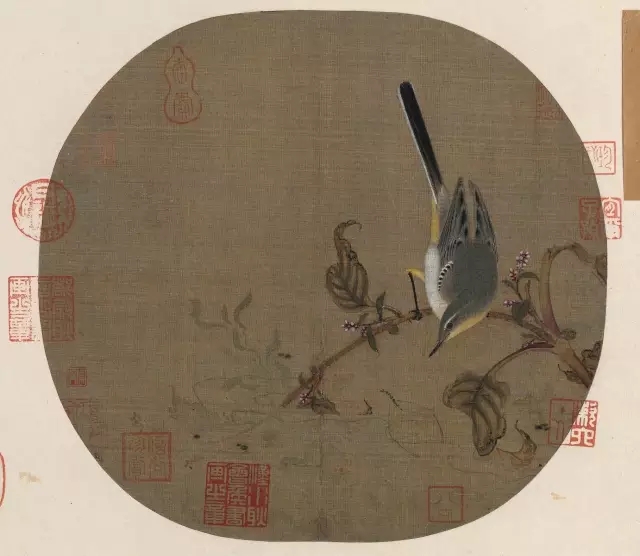 ……这组取材于故宫旧藏《红蓼水禽图》。