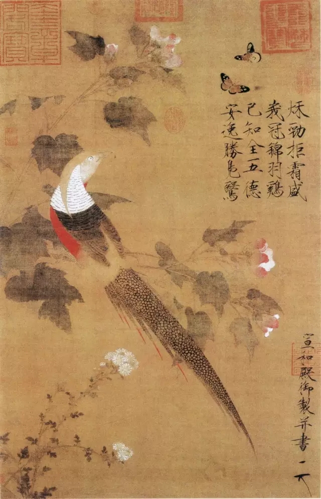 都是参照宋徽宗的《芙蓉锦鸡图》、