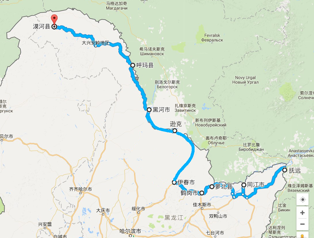 抚远—同江—鹤岗—伊春—逊克—黑河—漠河
