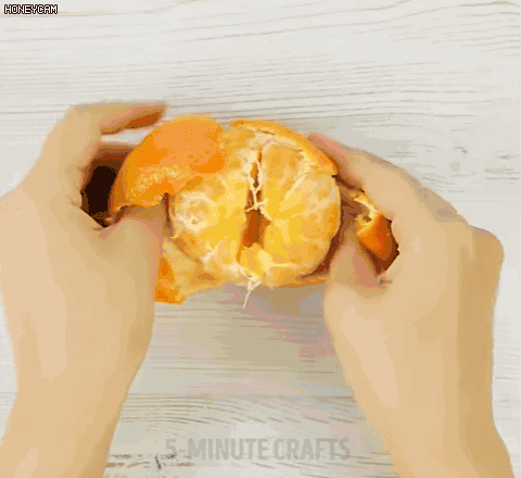 33、这样剥橙子、橘子、柚子不脏手:剥橙子的时候先滚一滚再剥橙子,就能剥出完整的橙子和柚子了,完全不脏手。或者可以切掉两端后,轻轻切一刀,只需3刀,橙子就能变成一片片的。