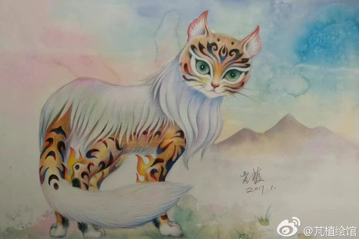 你曾经为爸爸彩铅画“山海经”系列配过几篇文章,其中有一篇《朏(fei)朏(fei)》是妈妈最喜爱的,那样有意思构架和文字,妈妈都不敢相信是出自一位16岁的少年之手。妈妈尤其记得那个令人忘忧的奇兽—朏朏。妈妈现在多么希望亲爱的你,从奇幻的空间,为妈妈送来一只朏朏,令妈妈不再记得你离开的痛苦,仅记与你相依相聚分分秒秒的幸福时光……