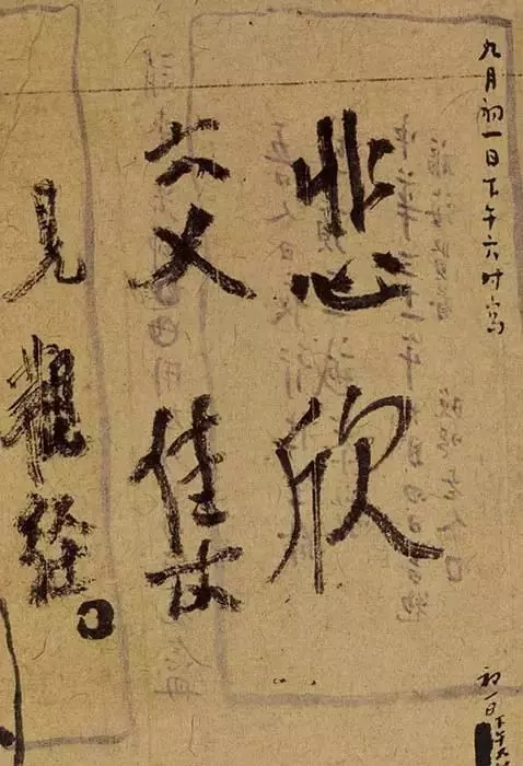 一是他圆寂前夕,写下的“悲欣交集”的帖子,无论是这句话本身,还是他所写的墨宝,都使人看到一位高僧,在生死玄关面前的不俗心境,既悲且欣,耐人寻味。