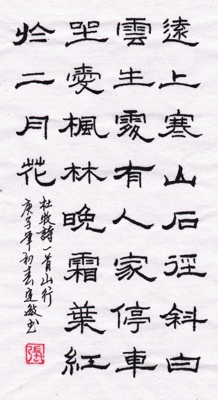 作者简介:张定敏,男,中共党员,1955.2.12出生。大专学历。退休前为英语教师。重庆人,现居黑龙江牡丹江市。从事书法研习中,以硬笔书法为主,编写过硬笔书法教材。本人也先后被多次评为国家、省市级专业书法艺术等优秀指导老师。由于成绩卓著,1997年由中国艺术研究院认定入选《中国文化艺术人才库》;