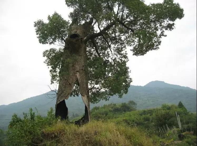 这是一棵古樟树,直径达到了3米多,遭到了雷击火烧,如今只剩下两片树皮,但是它依旧是枝繁叶茂。