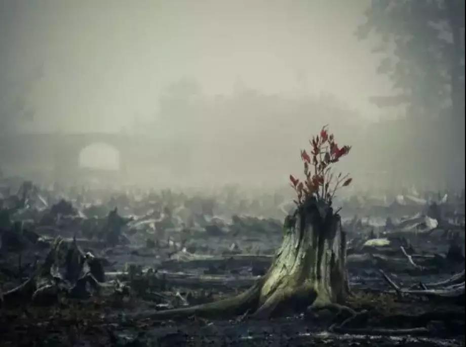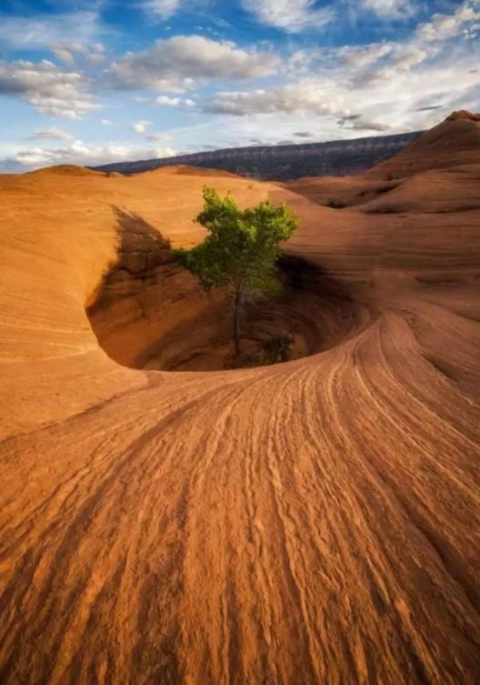 一片荒芜的土地,没有一点生命气息,在岩石坑里这棵树把这里当做了家,顽强的存活着。