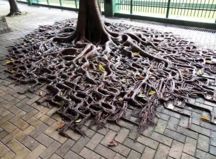 盘根错节扎进水泥砖土,它在向世人宣告生命的霸道与坚强。